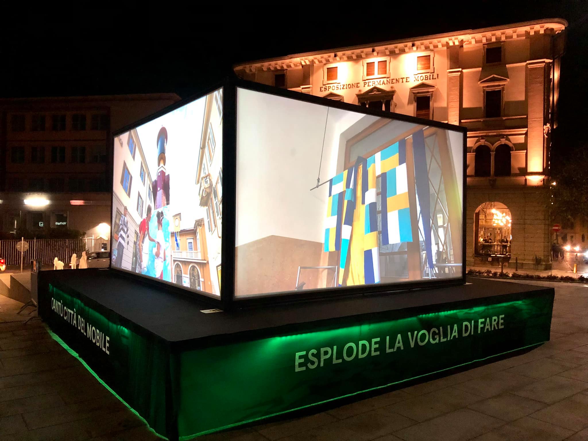 Grazie all’impiego di quattro proiettori sincronizzati, il cubo ha permesso la diffusione continua di immagini e video.